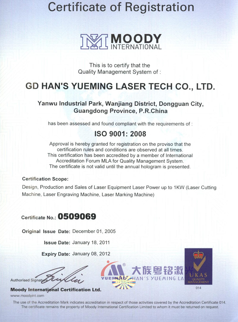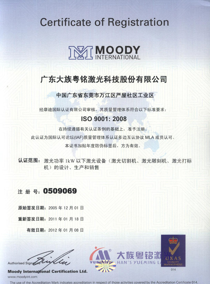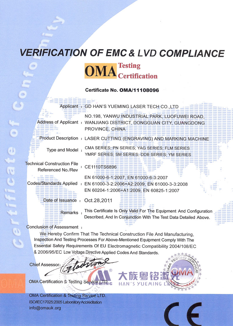 激光切割/雕刻機ISO 11553:1996國際標準認證 |