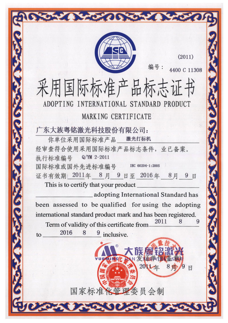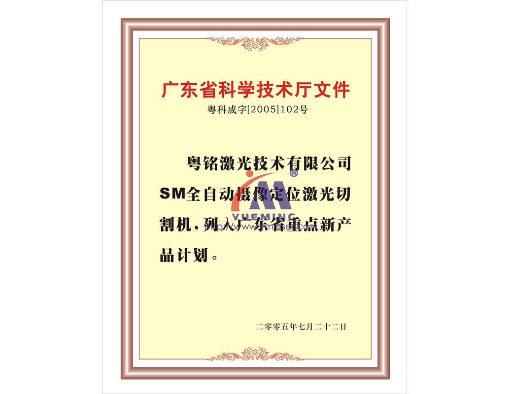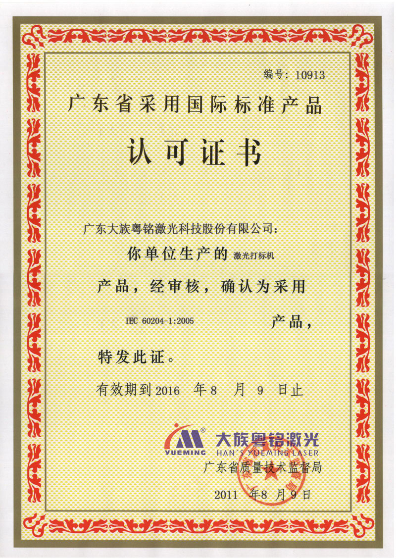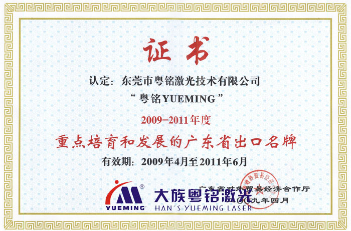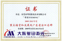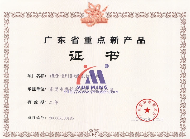 激光打標機廣東省重點新產(chǎn)品證書 | |