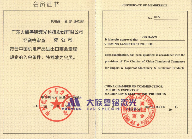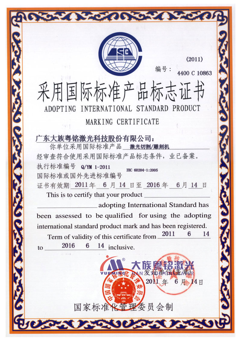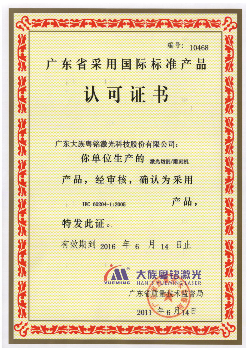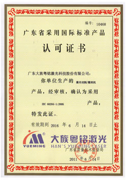激光切割/雕刻機ISO 11553:1996國際標準認證 | |