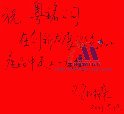 中國光學學會激光加工委員會主任鄧樹森先生題詞 |