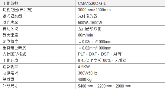 CMA1530C-G-E 金屬激光切割機產品特點:
