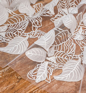 服裝輔料激光切割屬于小幅面攝像定位激光切割應用的一種,通過標記Mark點,相機自動識別后激光頭即會按照標記點進行輪廓識別切割。適用于貼布繡花、商標徽章、毛領等服裝輔料的快速切割。