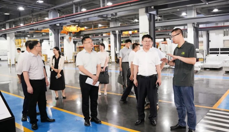 在卓銳副總經理的陪同下,吳阿明副主任等領導一行先后走進大族粵銘激光智能激光裝備展示廳和激光設備制造總裝車間,對集團在高端產品規劃、數字化生產制造能力、全技術生態自主研發實力等進行了全面調研。考察期間,卓副總向吳副主任重點匯報了大族粵銘激光在汽車安全系統制造、3C電子精密制造、航空航天、風電和水電能源、船舶制造、工程機械、農業機械、礦山機械、鈑金加工、鋼結構、家具制造、制衣、制鞋等先進制造領域的產品線布局和技術創新優勢,以及全球市場發展戰略等情況。