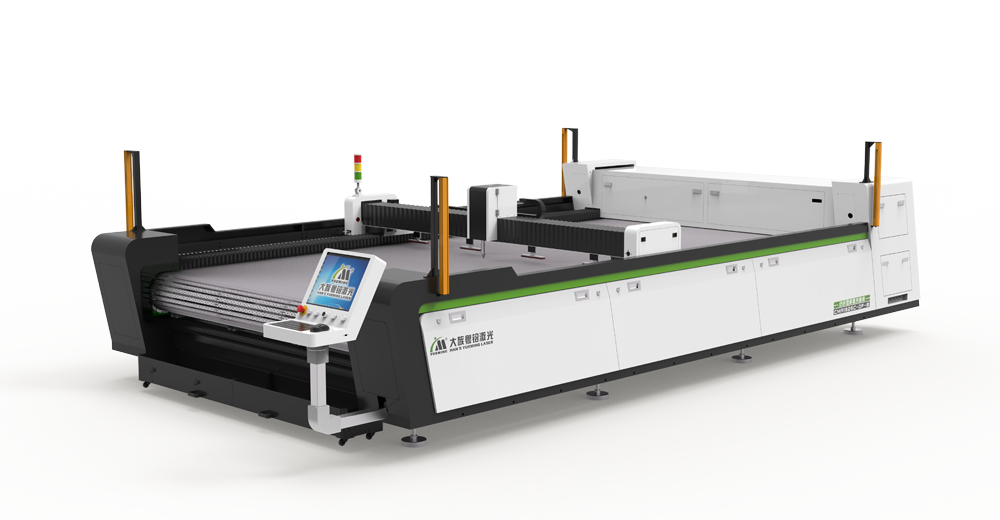 大族粵銘激光紡織CO2面料激光裁床系列,采用雙橫梁異步激光切割系統,合理分配兩個激光頭在同一切割幅面內進行混合切割;配備進口大型龍門設備精密加工機床,壓料桿平整送料,齒輪齒條驅動;全自動電子加油潤滑系統,可不間斷生產運行;可適應任何柔性材料激光切割,比如沙發面料激光切割、服裝布料激光切割。