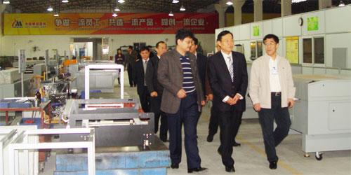 科技企業表彰、獎勵大會后,市委常、常務副市長冷曉明、科技局局長何躍沛、萬江區委書記陳志超來到大族粵銘調研,重點參觀了企業研發中心,并與公司副董事長李仲卿、科技人員以及員工親切交談。公司副總、技術總監劉志軍向市、區領導介紹了技術創新和產品研發情況。冷曉明副市長勉勵企業:機會孕育于危機之中,企業要注重創新和研發,爭取搶占未來經濟科技發展制高點,企業要實現跨越式發展。陳志超書記鼓勵企業:更好的用活國家對科技企業的優惠政策,爭取更大的發展,企業要爭取早日上市。