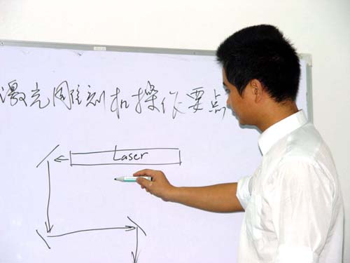 培訓(xùn)員正在給客戶演示如何安裝激光管 |