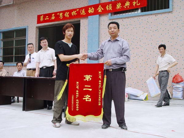 為藍(lán)球比賽第二名頒發(fā)集體榮譽(yù)錦旗