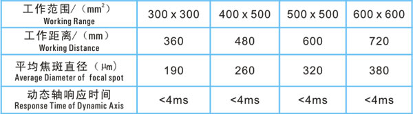 激光波長(zhǎng): 10640nm 激光功率: 0~100W連續(xù)可調(diào) 打標(biāo)范圍: 標(biāo)準(zhǔn) 500mm×500mm 可調(diào) 400mm×400mm 或 600mm×600mm 最大打標(biāo)線速: 7000mm/s 最小字符: 1mm 重復(fù)精度: ±0.02mm 冷卻方式: 水冷 電力需求:AC220V 30A 50HZ 平均功耗: ≤6.5KW