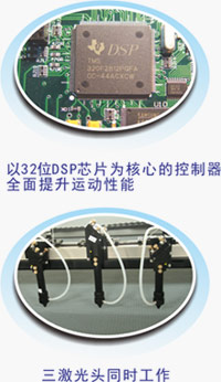 1.機器配置三個切割頭,三頭之間的距離可根據需求手工調節,并可以按照需求調節各頭的切割功率,每個單頭最大加工副面 600mmX1400mm。