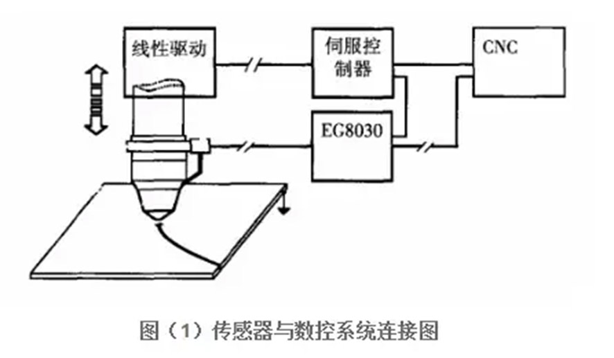 光纖激光切割機實現自動尋邊功能所需要的硬件連接及組成如圖(1)所示,主要包括CNC、伺服控制、線性驅動、傳感器等。