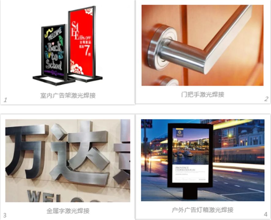 在廣告行業(yè),手持式激光焊接機(jī)可用于金屬字、廣告牌、標(biāo)識(shí)牌金屬板、廣告燈箱金屬板、廣告金屬展示架等產(chǎn)品在內(nèi)的金屬材料焊接,手持式激光焊接機(jī)采用非接觸式焊接工藝,焊接高效高速,焊縫平滑漂亮,可加工范圍廣,操作簡(jiǎn)單,上手即可焊接,無(wú)需花費(fèi)高額的培訓(xùn)成本。