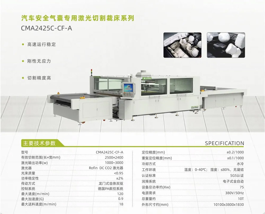 安全氣囊是汽車安全保障的重要裝置,它與座椅安全帶配合使用,可以為乘員提供有效的防撞保護。在汽車相撞時,安全氣囊使頭部受傷率減少25%,面部受傷率減少80%左右。為了讓安全氣囊的設計更有針對性,加工更加精準細膩,安全氣囊制造商普遍選擇激光切割設備進行加工。