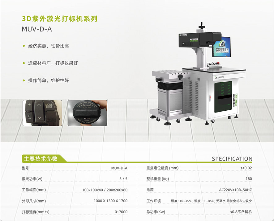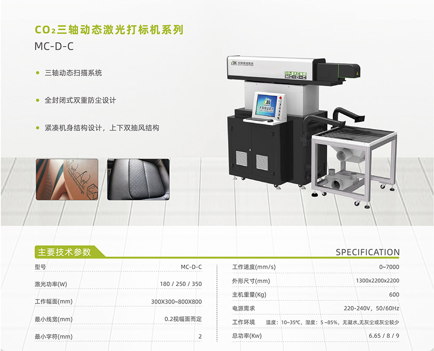在汽車內飾產品加工中,激光打標機可對各種由皮革、布料、木質、合成材料等汽車內飾產品,進行精準而高效的圖文繪制,包括logo添加、個性圖文演繹、精彩雕花等。比如通過激光在座套、內襯、方向盤、安全帶、腳墊等產品上打標圖形從而增加產品的裝飾性,可營造出更精致、更時尚的汽車內飾體驗。