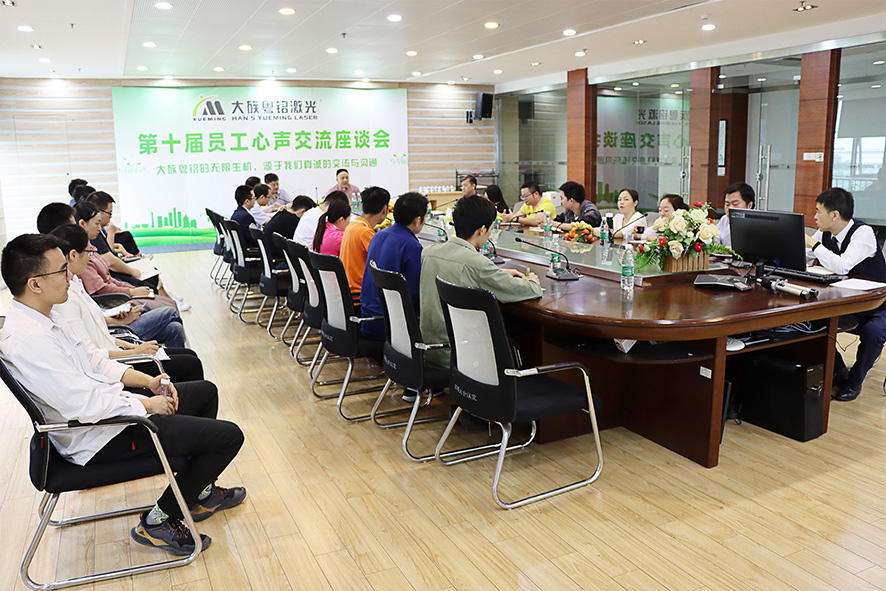 每年的員工心聲交流座談會是粵銘激光集團“家文化”建設的重要一環,通過召開交流會傾聽員工心聲,了解員工訴求,拉近了員工與企業管理團隊之間的距離,增強了員工的歸屬感、責任感,也讓大家心往一處想,勁往一處使,為粵銘激光集團的持續健康發展努力奮斗。