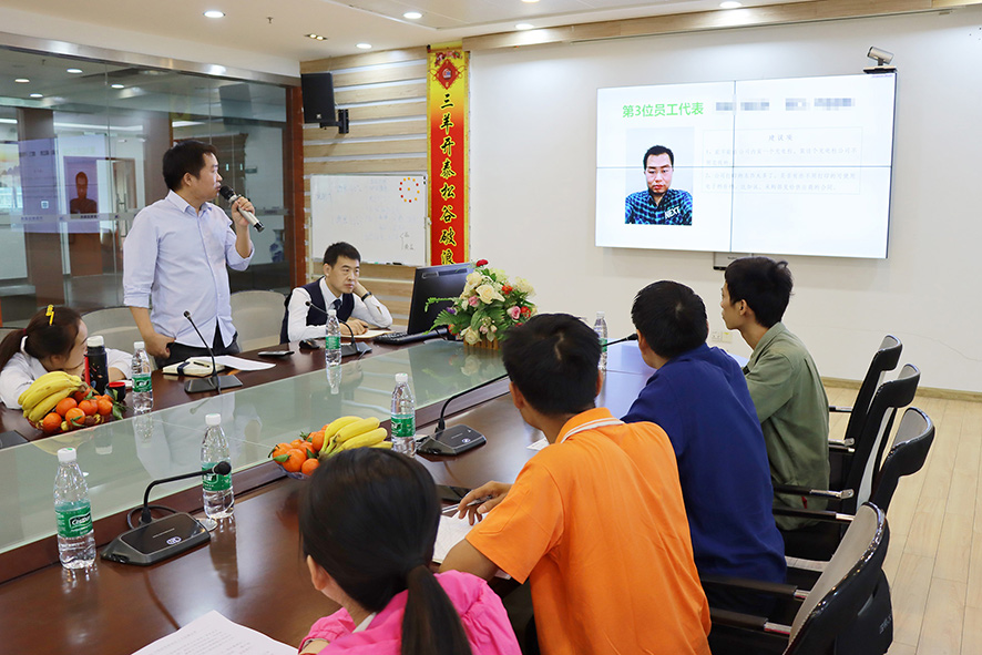 在員工心聲交流座談會現場的氣氛輕松活躍,員工代表們逐一發言、各抒己見,就日常工作及生活中遇到的問題和建議獻策建言,就部門間的溝通協作問題,公司的福利待遇問題,也提出了自己的想法和建議,希望住宿環境越來越舒適、飯堂食譜越來越多樣化、文體活動越來越豐富、業務培訓越來越專業...語言簡單而樸實,表達出了員工代表們對于公司各項改善提升的期許。