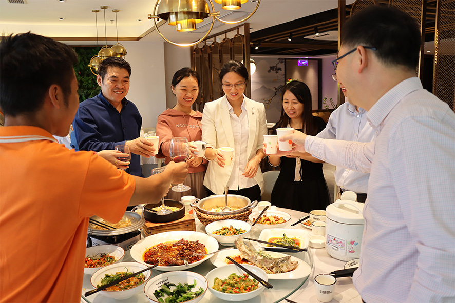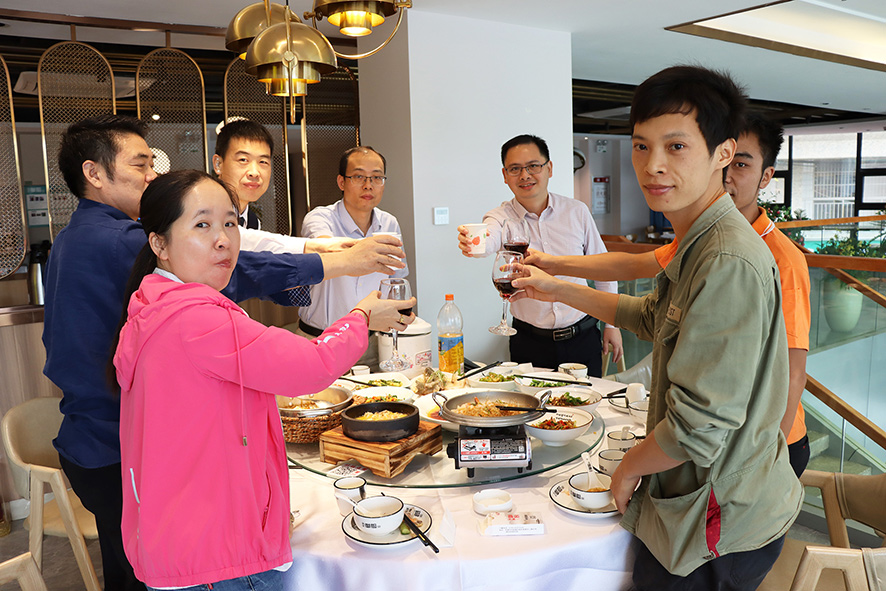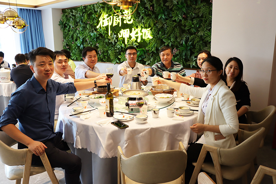會后,參加會議的員工代表在卓總和各個職能中心高層領導的陪同下齊聚一堂,共進午餐,談心事,拉家常,其樂融融。