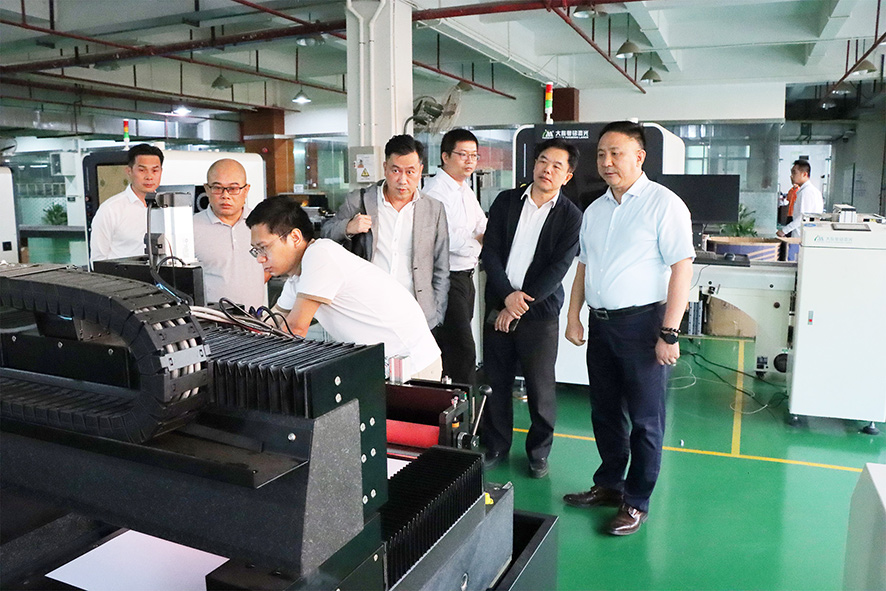 在集團(tuán)執(zhí)行董事兼總經(jīng)理卓勁松先生的陪同下,來訪領(lǐng)導(dǎo)一行參觀了粵銘激光集團(tuán)現(xiàn)代化智能制造生產(chǎn)中心、研發(fā)中心與激光設(shè)備展示廳,在參觀的過程中,卓總詳細(xì)介紹了我司各系列高端激光裝備的技術(shù)亮點(diǎn)及其應(yīng)用領(lǐng)域。先進(jìn)的激光工藝、前沿的激光應(yīng)用和現(xiàn)代化的智能生產(chǎn)車間給來訪領(lǐng)導(dǎo)們留下了深刻的印象,不時(shí)好奇的與卓總探討激光在各自領(lǐng)域的用途。