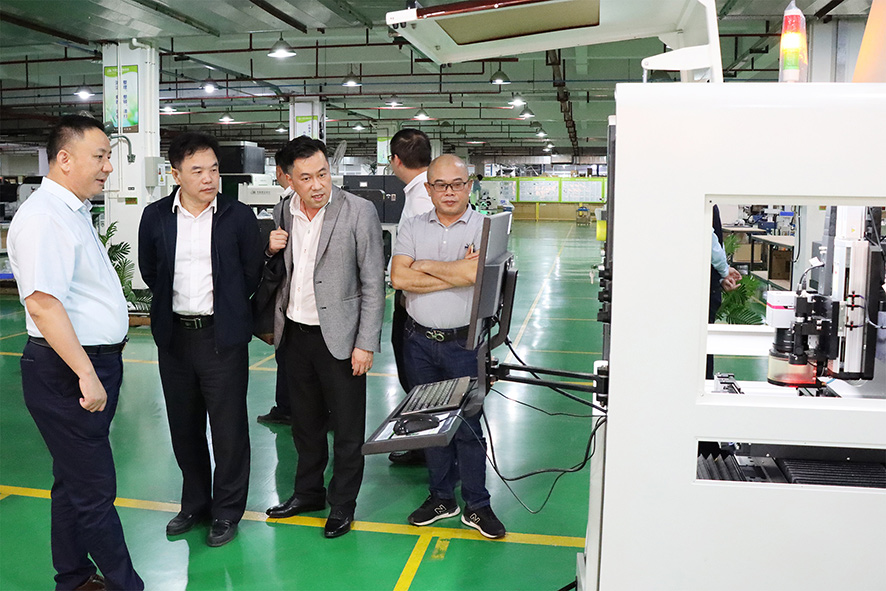2020年11月25日下午,惠州市仲愷高新區(qū)工商聯(lián)黨組書記湯建軍先生、副主席張錦強(qiáng)先生、溫奕波先生及陳瑞勵(lì)女士一行考察團(tuán)蒞臨粵銘激光集團(tuán)考察調(diào)研。松山湖莞商聯(lián)合會(huì)會(huì)長(zhǎng)陳滿新先生、常務(wù)副會(huì)長(zhǎng)兼秘書長(zhǎng)吳毅斌先生等相關(guān)領(lǐng)導(dǎo)陪同調(diào)研。粵銘激光集團(tuán)執(zhí)行董事兼總經(jīng)理卓勁松先生及集團(tuán)相關(guān)領(lǐng)導(dǎo)熱情接待了來訪領(lǐng)導(dǎo)一行。