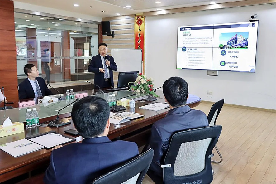 在座談會上,雙方進行了深入地交流探討。卓總首先對蒞臨粵銘激光集團的蘇書記一行領導表示熱烈的歡迎,并重點介紹了集團發展歷程、行業地位、產業布局和創新成果。
