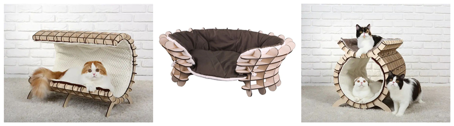 由激光切割木板構(gòu)建的貓窩樣式簡單大方