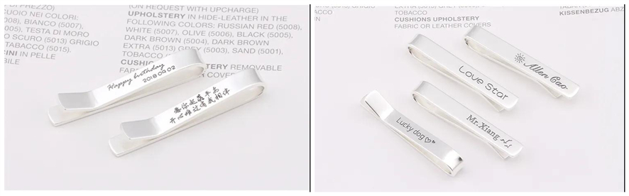 將紀念日、情話打標在領帶夾上,是情感的宣誓、愛的釋放、紀念的定格,亦是對愛人工作上的鼓勵;不褪色永久牢固,讓您送出的愛成為“永恒”;