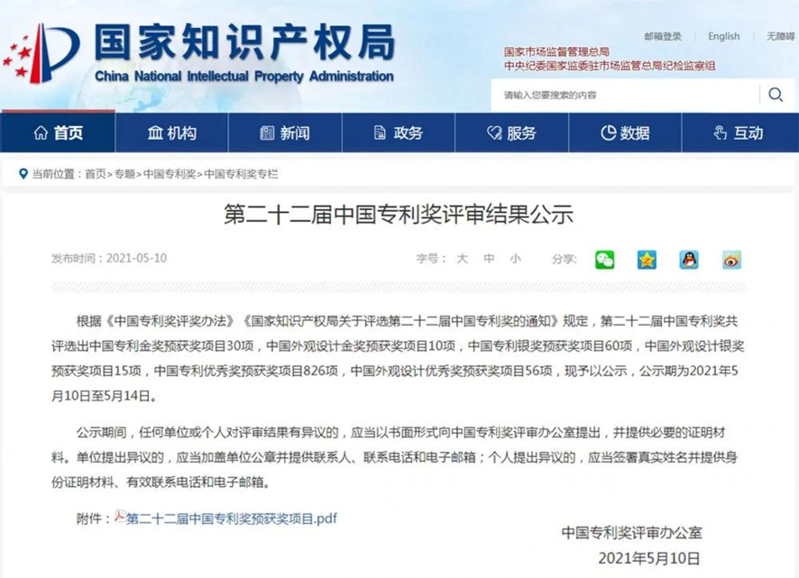 據了解,中國專利獎于1989年設立,與國家科技獎齊名,是由中國國家知識產權局和世界知識產權組織共同主辦的中國專門對授予專利權的發明創造給予獎勵的政府部門獎,受聯合國世界知識產權組織(WIPO)的認可。這是我國政府部門針對專利領域設立的唯一國家級政府獎項,也是專利行業的最高獎項。該獎項重在強化知識產權創造、保護、運用,推動經濟高質量發展,鼓勵和表彰為技術(設計)創新及經濟社會發展做出突出貢獻的專利權人和發明人(設計人)。