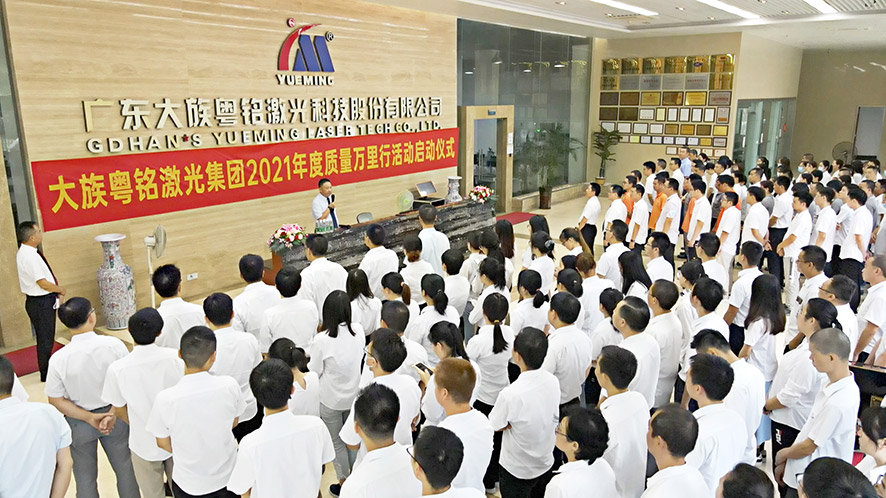 2021年7月28日,主題為“全員參與、全程管控、全面提升”的粵銘激光集團2021質量萬里行啟動儀式在東莞松山湖基地隆重舉行。集團執行董事兼總經理卓勁松先生、集團技術中心副總經理王軍先生、集團營銷中心副總經理卓飛先生、集團品質保障部、物資管理部、供應商管理部、客服管理部、研發部、營銷中心、人力資源中心等部門員工代表共同參加。啟動儀式由集團營銷中心副總經理卓飛先生主持。粵銘激光集團全國各子公司、各事業部同步舉行啟動粵銘激光集團2021質量萬里行活動。