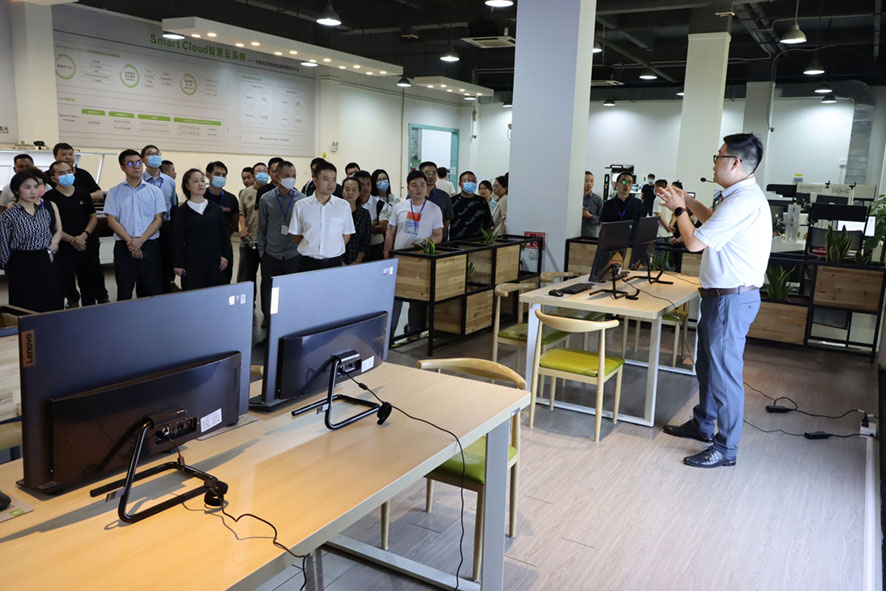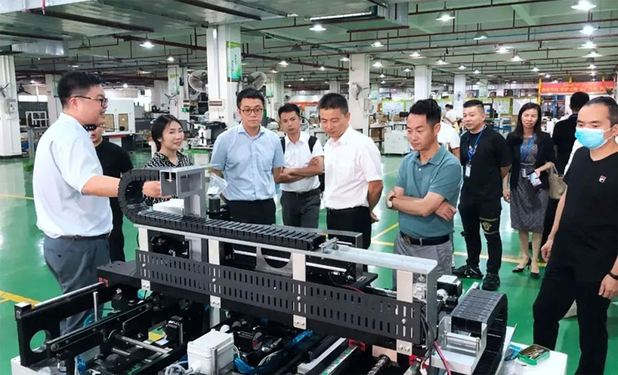 10月12日下午,參會嘉賓們實(shí)地參觀了大族粵銘激光集團(tuán)現(xiàn)代化智能制造生產(chǎn)中心、研發(fā)中心與激光設(shè)備展示廳,在參觀的過程中,王營錚總監(jiān)詳細(xì)介紹了我司制鞋領(lǐng)域各系列高端激光裝備的技術(shù)亮點(diǎn)及優(yōu)勢,并就嘉賓們提出的問題進(jìn)行了現(xiàn)場交流。