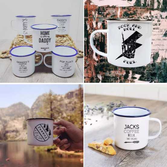 搪瓷杯的導熱性好、輕便、耐摔是戶外野炊必備良品。傳統的噴墨或絲網印刷并不能滿足在明火烤后仍保持標記醒目,而激光雕刻可精準到毫米以內,精細度高,不易磨損,多次的清洗或灼燒不會使得雕刻上的圖形扭曲。