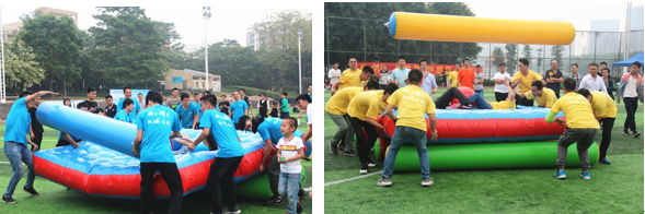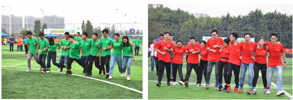 今年運動會與往年有很大不同,本屆運動會將往年傳統的運動項目與趣味游戲相結合,共設置了昂首前行+跳大繩、趣味接力賽、拔河比賽、碰碰球爭霸賽、十人九足、借木移舟6個項目,集趣味性、娛樂性、協作性、競爭性為一體,十多位集團公司領導和職工共同參與了本次競技。