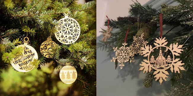 隨著人們環保意識的增強,圣誕樹逐漸從真樹轉向了塑料樹,可是卻少了那么一點實木的氣息,這時掛上激光切割木質的掛飾就再合適不過了。由于工藝品激光切割機與數控系統結合,在軟件上制圖后,高能量的激光束就能按照設計圖紙切割出所需要的圖案或文字,浪漫的祝福語別致的雪花、家人的名字、水滴里的童話故事……