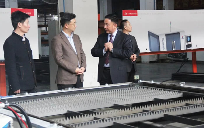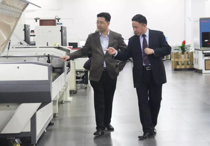 首先, 在卓總的陪同下,中共太倉市委徐志強常委一行實地參觀了我司產品展示廳、生產車間,全方位了解我司發(fā)展概況及激光技術成果。中共太倉市委徐志強常委一行對大族粵銘集團創(chuàng)新性的激光產品均表現出了濃厚的興趣,尤其對高端激光裝備更是贊譽有加。