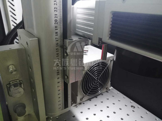 首先,我們需要先調的是焦距。我用的是大族粵銘激光最新的一款桌面式的光纖激光打標機,型號是MF-P-C,功率20W。因為不銹鋼打黑是需要離焦的,因此我們需要把焦距降到比正常值低1-2mm左右。
