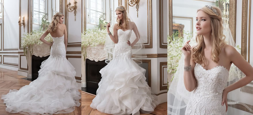 抹胸露肩婚紗保持著傳統的浪漫元素