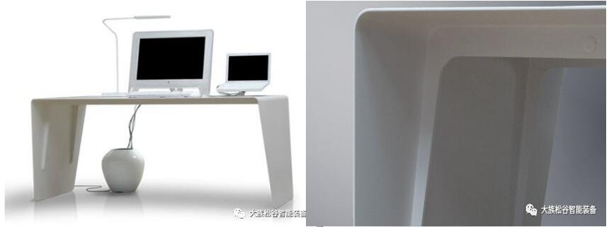 片圓形的金屬片,1 片作為桌面,8 片作為底部支撐,這是意大利設(shè)計師魯?shù)婪颉ざ喽嗄嵩O(shè)計的Still 咖啡桌。每個金屬片只有5 毫米厚,由激光切割而成,表面有PVC 保護(hù)層,整個桌子質(zhì)量非常輕,但絲毫無法掩飾其工藝的精致巧妙,以及極簡風(fēng)格中散發(fā)著的優(yōu)雅氣質(zhì)。整個的辦公桌是用激光切割3.5毫米板鋼,不使用螺絲或連接部件,只用兩根肋骨支撐,典型的極簡主義的風(fēng)格。