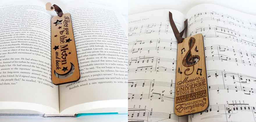 激光雕刻書(shū)簽如藝術(shù)畫(huà)般平躺在書(shū)頁(yè)中