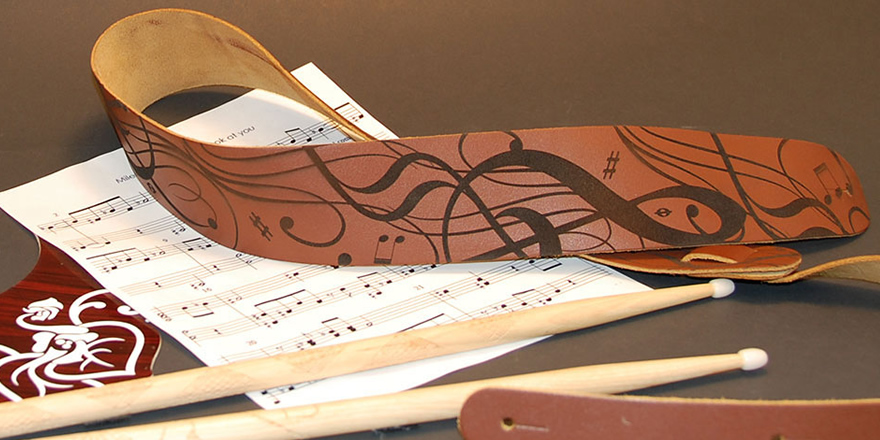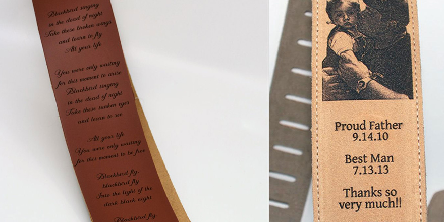 利用激光打標(biāo)文字圖案為吉他背帶傳情